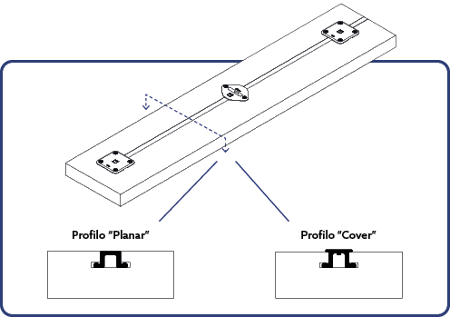 - Aluminum covering profile, coplanar PLANAR or cover with profile COVER